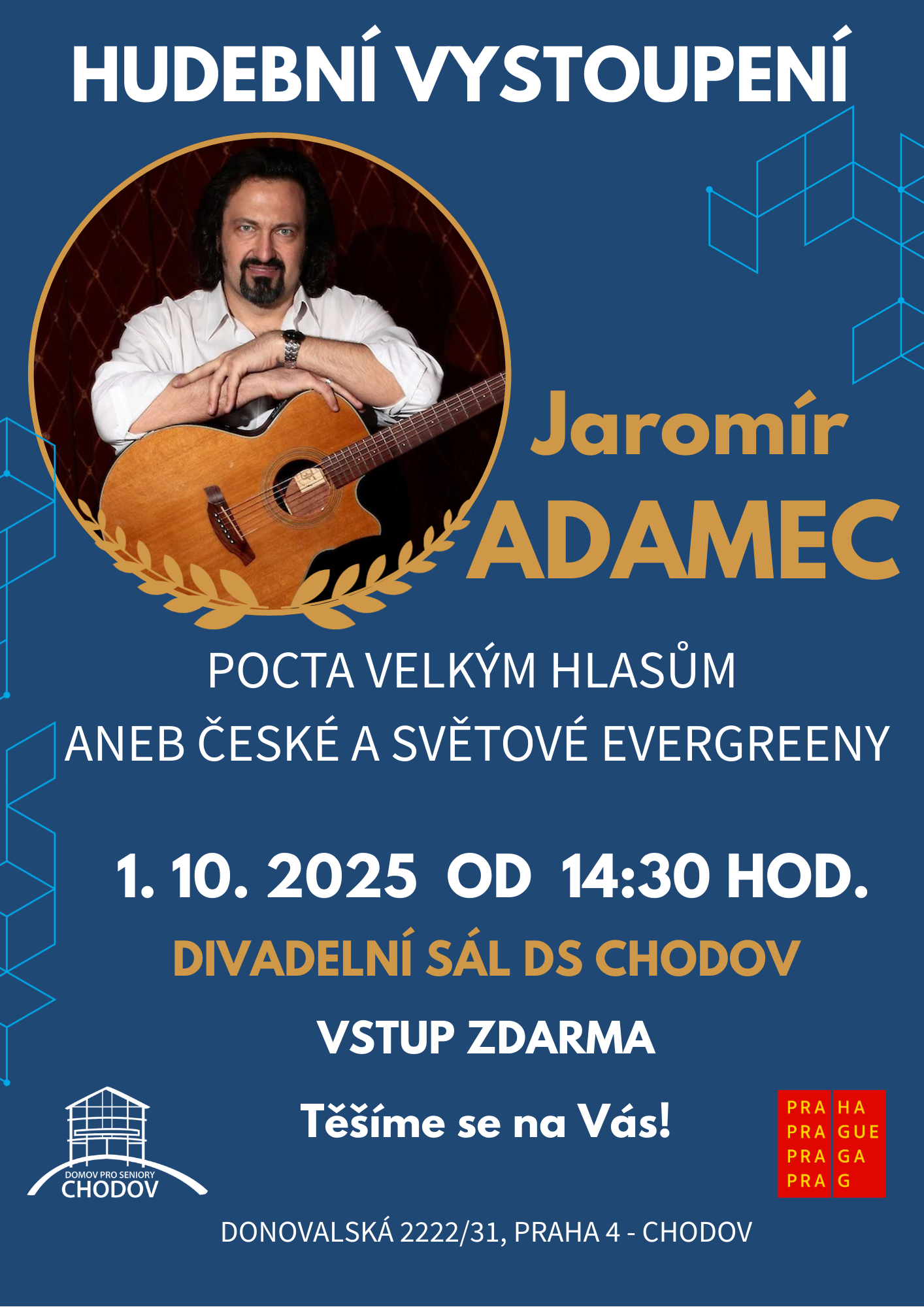 | Hudební dárek ke Dni senorů v podobě vystoupení Jaromíra Adamce "Pocta velkým hlasům aneb české a světové evergreeny". | 01.10.2025 | 14:30 |  |